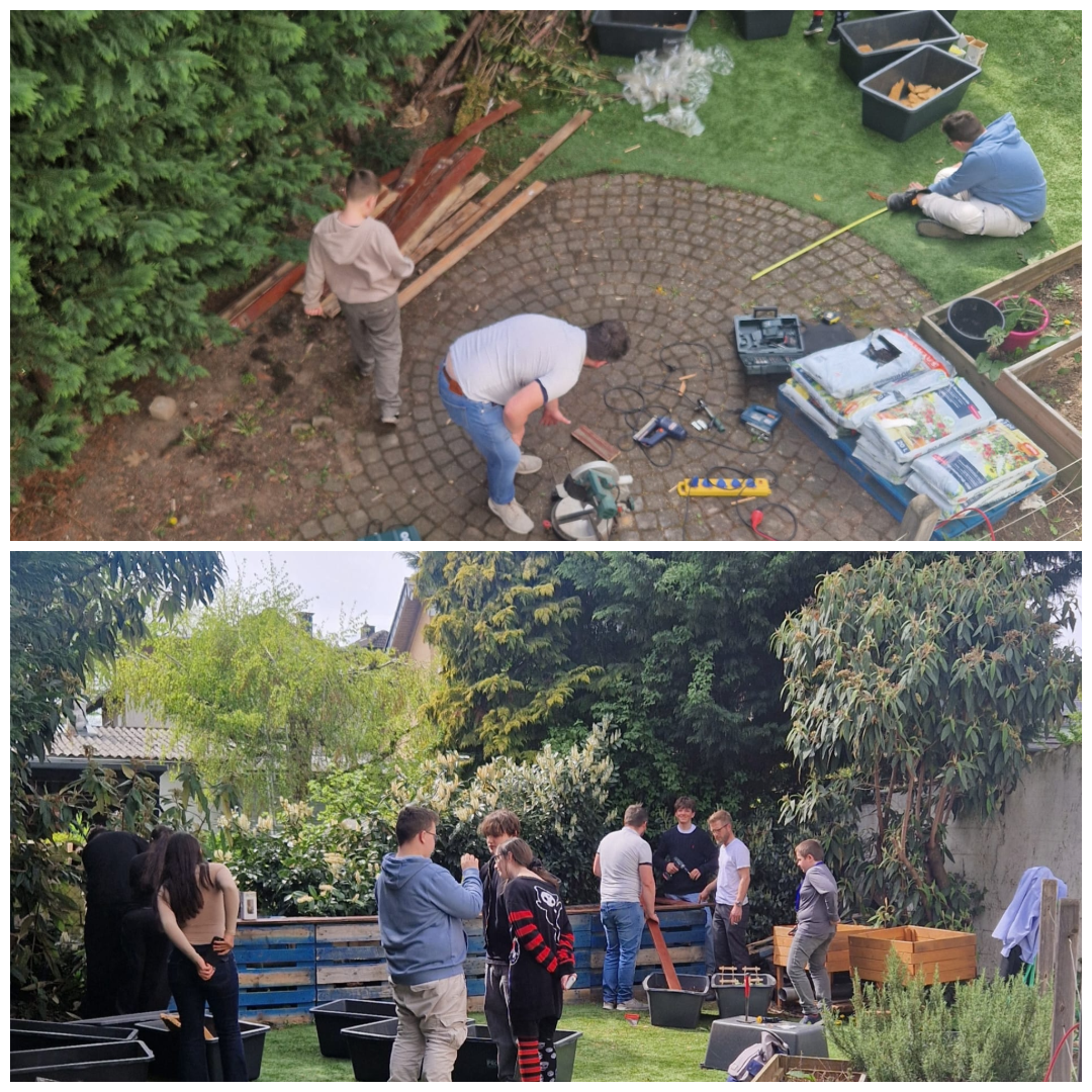 Neben den Bepflanzungsarbeiten lernen die Schülerinnen und Schüler den Umgang mit Werkzeugen wie Bohrmaschine, Akkuschrauber, Stichsäge und anderen Geräten. Unser Werkzeugarsenal erweitert sich auch dank Spenden von Eltern ständig. Die praktische Arbeit im Garten bietet eine wertvolle Erweiterung des Schulalltags, ist ein guter Ausgleich zum theoretischen Unterricht am Vormittag und macht bereitet den Teilnehmern vor allem jede Menge Spaß.